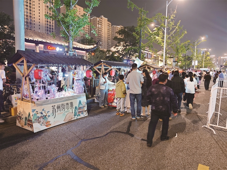 从传统民乐到现代音乐,从文化体验到舌尖享受,今年国庆、中秋假期,宿迁的夜晚为市民游客提供了多样化的度假选择。10月4日晚,在位于苏宿工业园区的苏州街北侧草坪广场,一场音乐与美食的盛宴在夜色中热烈展开,现场气氛火爆,充满了热闹的烟火气息。