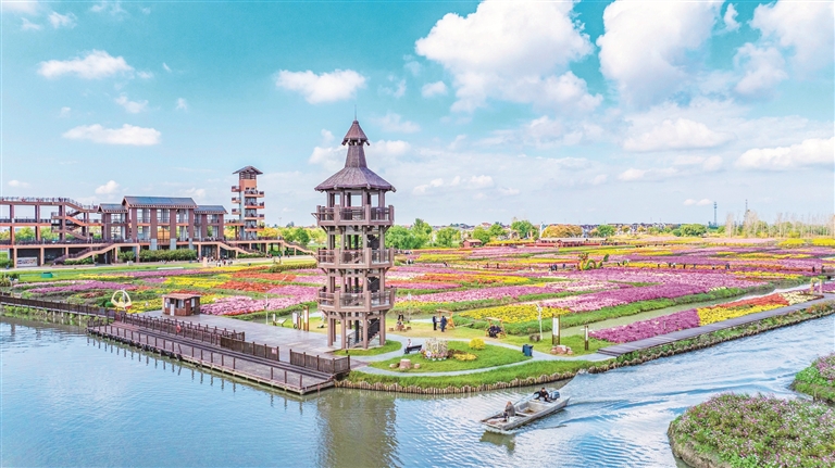 11月2日,游客在江苏省兴化市千垛景区赏菊游玩(无人机照片)。深秋时节,景色绚烂,全国多地迎来赏秋热潮。 新华社发 周社根 摄