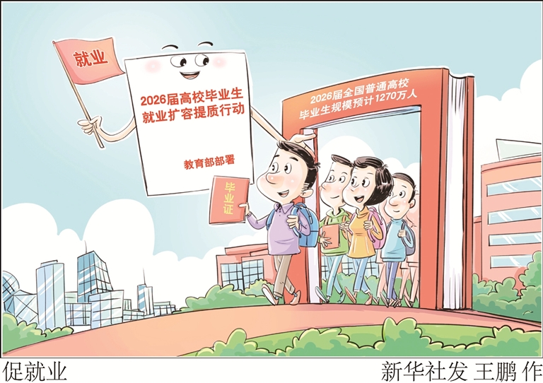 记者11月20日从教育部获悉,2026届全国普通高校毕业生规模预计1270万人,同比增加48万人。教育部部署各地各高校开展“2026届高校毕业生就业扩容提质行动”,围绕推进促就业政策落实、加力稳岗拓岗、支持创业带动就业、深化产教融合供需适配、抓实重点群体帮困兜底等方面持续发力,促进高校毕业生高质量充分就业。 新华社发 王鹏 作