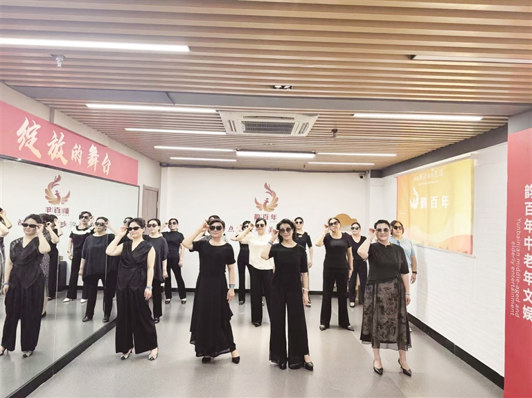 “要抬头挺胸,时刻注意自己的体态,跟随音乐节奏,保持微笑。”6月15日下午,在宿城区韵百年文化艺术中心的形体教室内,一群平均年龄在55岁的学员正在上模特课。她们身着形体服,妆容精致,面露微笑,随着音乐的旋律和老师的口令,踩着节奏起步、转身……